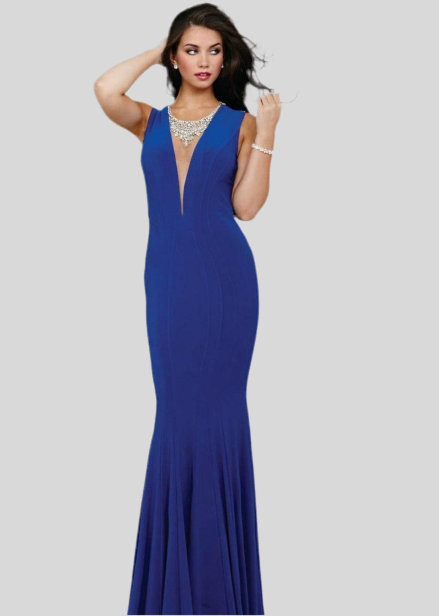 Indulge in the elegance of JOVANI's dark blue prom dress. Made with a high-quality fabric. The dress's deep blue color will make a statement, Show off your style with Jovani.
