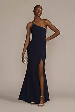 This asymmetrical jersey gown features a flirty waist cutout and dramatic skirt slit for a look that's elegant and sleek. Wear it to prom or your next special occasion with shoes made for showing off.